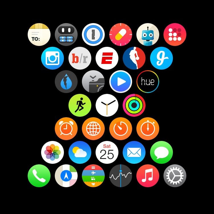 Beyond watch faces, the home screen is another area where users can show some creativity with manipulation of the constellation of apps from within the Apple Watch iPhone companion app. Some users have created completely new shapes of their own design, while others have recreated famous logos, from Apple's to what appears to be The Legend of Zelda triforce.