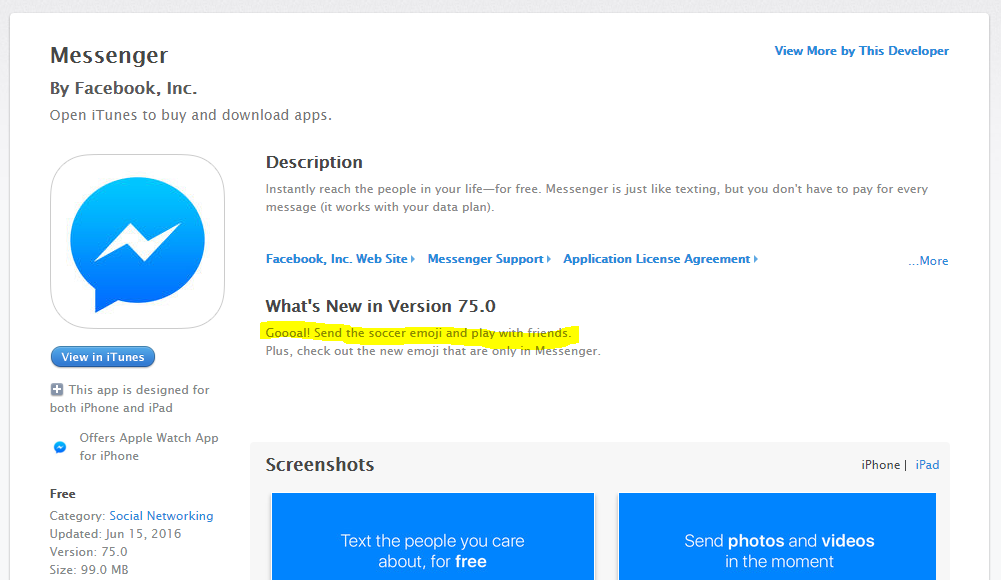 To play the game, called "Keepy Up", update the iOS Messenger app and send a friend a soccer ball emoji, then tap the emoji in the chat thread to launch the game, the aim of which is to keep the ball in the air.