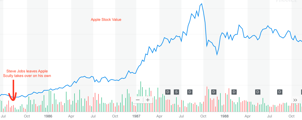 Let's take a look at how SCULLEY did when Jobs left Apple in the 80s