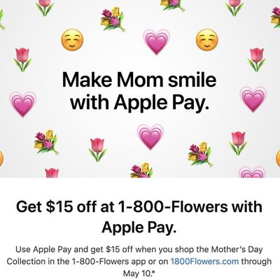 Apple Pay Promo Offers $15 Off 1-800-Flowers in Celebration of Mother's Day