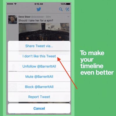 Twitter Rolls Out Algorithm-Training 'I Don't Like This Tweet' Button on iOS