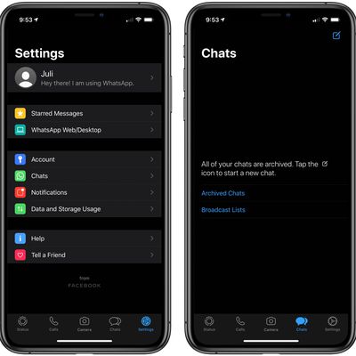 WhatsApp for iOS Now Supports Dark Mode