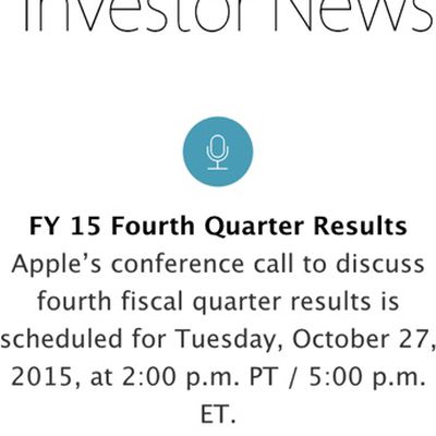 Apple to Announce Q4 2015 Earnings on October 27